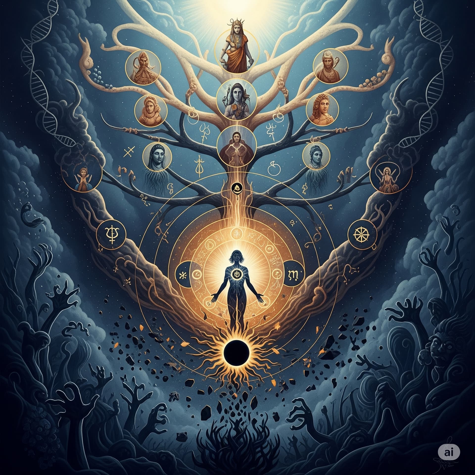 - The End and the New Beginning (Armageddon and “666”): When one big cycle of the Universe ends (like an old tree falling asleep), it doesn’t disappear! It gathers back into a tiny spark (like “666” can symbolize such a cycle’s completion, so everything can start again) and gets ready for a new birth.